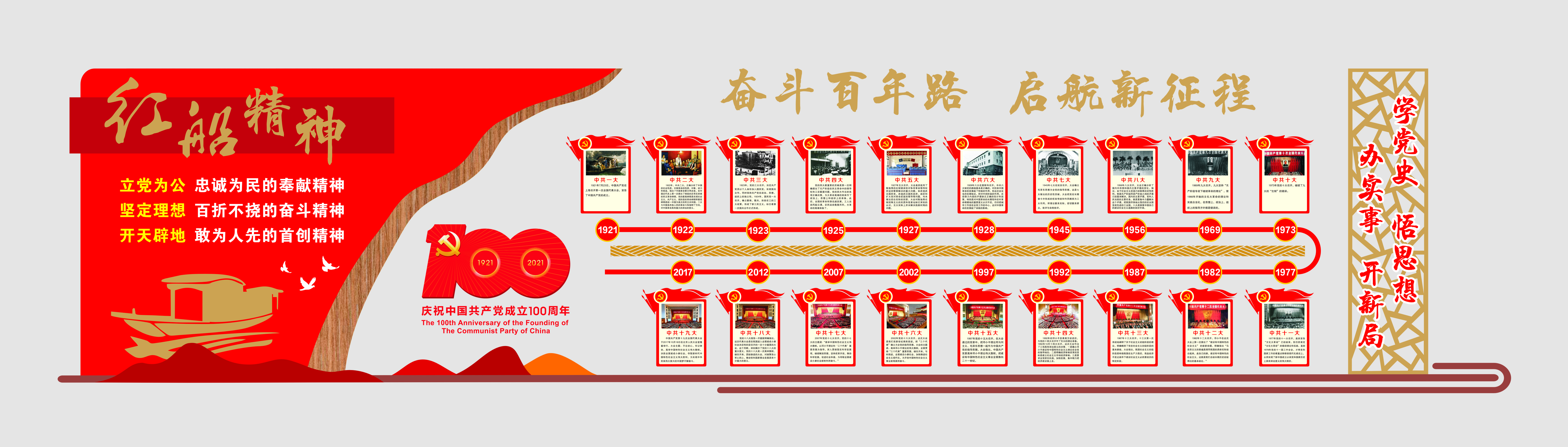 展板內(nèi)容主要是:1921年7月中國(guó)共產(chǎn)黨的成立到2021年7月黨的百年發(fā)展簡(jiǎn)史等內(nèi)容。