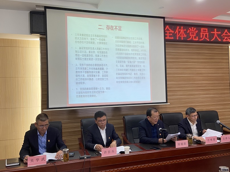 在莊嚴肅穆的國歌聲中,集團公司黨總支換屆選舉拉開了序幕。按照既定會議流程,集團黨支部書記項端陽首先在圍繞政治建設(shè)、思想建設(shè)、組織建設(shè)、作風(fēng)建設(shè)、廉政建設(shè)和黨建深化與創(chuàng)新等方面系統(tǒng)地回顧了近幾年來的工作,分析了黨建工作面臨的形勢與存在的問題。同時對下一屆集團黨總支工作提出了五點建議。經(jīng)過全體黨員認真審議,通過了總支書記項端陽同志所做的報告。